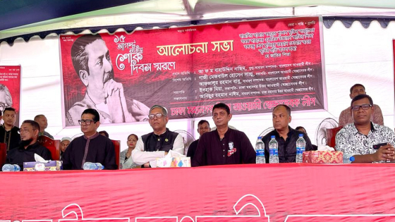 তিনি আরও বলেন, শোকের মাসে দাড়িয়ে আমরা শুধু শোক প্রকাশ করে বেঁচে থাকতে চাই না। আমরা শোকের মাসে শোককে শক্তিতে পরিণত করতে চাই। এই শক্তি শেখ হাসিনার নেতৃত্বে সমৃদ্ধ বাংলাদেশ গড়ার ক্ষেত্রে যারা বাধা সৃষ্টি করবে তাদের প্রতিহত করবে। শেখ হাসিনার নেতৃত্বে বাংলাদেশ যখন উন্নয়ন অগ্রগতির পথে এগিয়ে চলছে তখন একটি গোষ্ঠী এই উন্নয়ন ও অগ্রগতিতে বাধা সৃষ্টি করতে চায়। তারা দেশের শাসন ব্যবস্থাকে ধ্বংস করতে চায়। ধর্মকে ব্যবহার করে তারা রাজনৈতিক ফায়দা লুটতে চায়। তারা সন্ত্রাসী কর্মকাণ্ডের মাধ্যমে নিজেদের ফায়দা লুটতে চায়। এই অশুভ শক্তির বিরুদ্ধে আমরা শোকের মাসে শোককে শক্তিতে পরিণত করে এদের মোকাবেলা করে দেশকে এগিয়ে নিয়ে যাব।