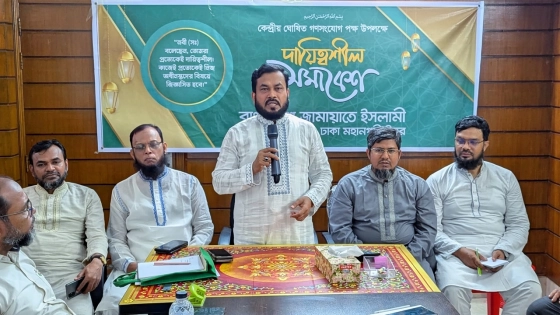তিনি রোববার (৬ এপ্রিল) সন্ধ্যায় রাজধানীর মোহাম্মদপুরের একটি মিলনায়তনে কেন্দ্র ঘোষিত গণসংযোগ কর্মসূচি ও বিক্ষোভ মিছিল বাস্তবায়ন উপলক্ষে মোহাম্মদপুর থানা জামায়াত আয়োজিত এক দায়িত্বশীল সমাবেশে সভাপতির বক্তব্যে এসব কথা বলেন। এসময় উপস্থিত ছিলেন মহানগরীর মজলিসে শূরা সদস্য আব্দুল আউয়াল আজম, মশিউর রহমান, সাখাওয়াত হোসেন, হাসানুজ্জামান প্রমুখ।