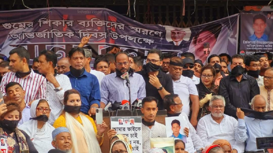 বুধবার (৩০ আগস্ট) বিকেলে রাজধানীর নয়াপল্টনে বিএনপির কেন্দ্রীয় কার্যালয়ের সামনে ‘আন্তর্জাতিক গুম প্রতিরোধ দিবস’ উপলক্ষে এক মানববন্ধন কর্মসূচিতে এ মন্তব্য করেন তিনি। গুম হওয়া নেতা-কর্মীদের সন্ধান দাবিতে ঢাকা মহানগর উত্তর ও দক্ষিণ বিএনপির যৌথ উদ্যোগে এই মানববন্ধন হয়।