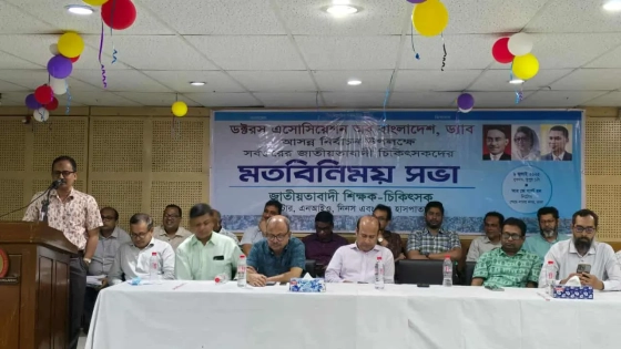 বুধবার (৯ জুলাই) দুপুরে রাজধানীর চারটি হাসপাতালের নেতারা এক মতবিনিময় সভায় এই ঘোষণা দেন। ড্যাবের আসন্ন নির্বাচন উপলক্ষে নিটোর (পঙ্গু হাসপাতাল), জাতীয় চক্ষুবিজ্ঞান ইনস্টিটিউট, জাতীয় নিউরোসায়েন্স ইনস্টিটিউট এবং শিশু হাসপাতালের জাতীয়তাবাদী আদর্শে বিশ্বাসী চিকিৎসকদের উদ্যোগে এই সভা অনুষ্ঠিত হয়।