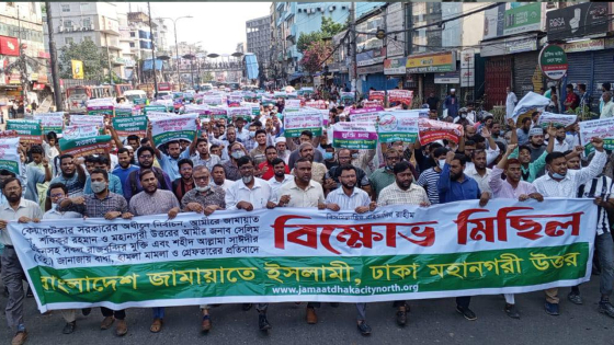 কেন্দ্রঘোষিত কর্মসূচির অংশ হিসেবে রাজধানীতে বিক্ষোভ মিছিল ও সমাবেশ করেছে বাংলাদেশ জামায়াতে ইসলামী ঢাকা মহানগর উত্তর।