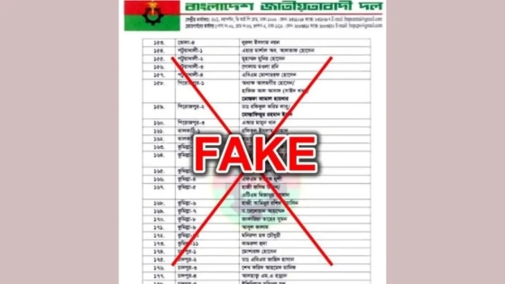 তালিকাটি সম্পূর্ণরূপে মিথ্যা, বানোয়াট এবং অসৎ উদ্দেশ্যপ্রণোদিত। এটি বিএনপির দপ্তর থেকে পাঠানো হয়নি এবং এর সঙ্গে দলের কোনো সংশ্লিষ্টতা নেই।’