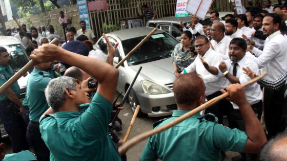 এ সময় পুলিশ ও আইনজীবীরা মুখোমুখি অবস্থান নেয়। বিএনপিপন্থি আইনজীবীরা সড়কে বসে পড়েন। এক পর্যায়ে পুলিশ লাঠিচার্জ করে সরানোর চেষ্টা করলেও আইনজীবীরা ব্যারিকেড ভেঙে মিছিল নিয়ে সিএমএম আদালতের প্রধান ফটকে অবস্থান নেন।