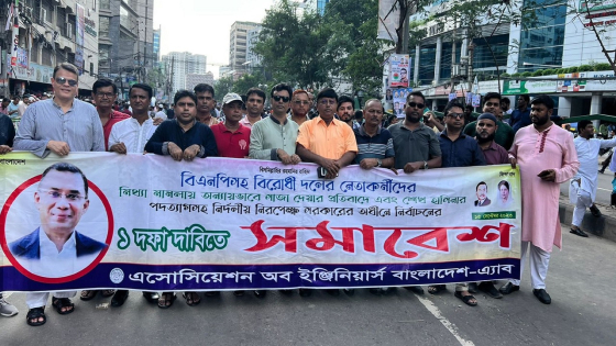 আন্তর্জাতিক গণতন্ত্র দিবস উপলক্ষে সরকার পদত্যাগের এক দফা এবং মহানগর উত্তর বিএনপির আহ্বায়ক আমানউল্লাহ আমানসহ নেতাকর্মীদের মুক্তির দাবিতে রাজধানীর নয়াপল্টনে বিএনপির কেন্দ্রীয় কার্যালয়ের সামনে এই সমাবেশ হয়। এতে সংহতি জানিয়ে যোগ দেন প্রকৌশলী নেতারা। অ্যাবের মহাসচিব প্রকৌশলী আলমগীর হাছিন আহমেদের নেতৃত্বে এ সময় উপস্থিত ছিলেন বিএনপির বিজ্ঞান ও প্রযুক্তিবিষয়ক সহসম্পাদক এবং অ্যাবের সিনিয়র সহসভাপতি প্রকৌশলী আশরাফ উদ্দিন বকুল, সহসভাপতি মো. মোস্তাফা-ই জামান সেলিম (সিআইপি), সিনিয়র যুগ্ম মহাসচিব প্রকৌশলী কেএম আসাদুজ্জামান চুন্নু, প্রকৌশলী উমাশা উমায়ন মনি চৌধুরীসহ অনেকেই।