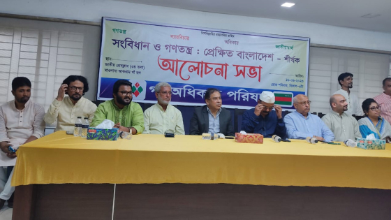 গণঅধিকার পরিষদ নেতা মিয়া মশিউজ্জামানের সভাপতিত্বে এতে আরও বক্তব্য রাখেন- আইনজীবী মহসীন রশিদ, এবি পার্টির সদস্য সচিব মজিবুর রহমান মঞ্জু, গণঅধিকার পরিষদের যুগ্ম আহ্বায়ক শামসুল আলম খান চৌধুরী, ব্যারিস্টার জীশান মহসিন, অধ্যাপক মাহবুব হোসেন, জাকারিয়া পলাশ, সাদ্দাম হোসেন, যুগ্ম সদস্য সচিব মোহাম্মদ আতাউল্লাহ, তারেক রহমান, অ্যাডভোকেট শিরিন আকতার শেলী, সাকিব হোসাইন, শেখ খায়রুল কবির, কেন্দ্রীয় নেতা আহমেদ ইসমাইল বন্ধন, জিয়াউর রহমান জিয়া প্রমুখ।