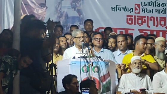 রাজশাহীতে তারুণ্যের রোডমার্চে বিএনপি মহাসচিব মির্জা ফখরুল ইসলাম আলমগীর বলেছেন, ‘এই দেশ ও গণতন্ত্রকে রক্ষা করার প্রধান দায়িত্ব আপনাদের (সাধারণ মানুষের)। আমাদের তিন সহযোগী সংগঠন যে আন্দোলন শুরু করেছে সেটি সারা দেশে পৌঁছিয়ে দিতে হবে। আমরা আগামী ১৮ তারিখে আমাদের পরবর্তী আন্দোলনের ঘোষণা দিব। আমরা রাজপথে নেমেছি, এখান থেকে ফিরে যাব না। এই সরকারের পতন ঘটিয়েই আমরা ফিরে যাব।’