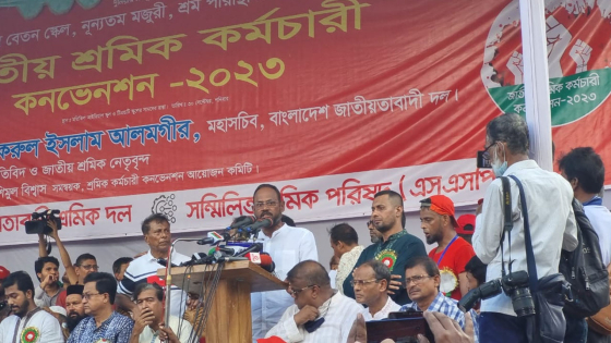 শ্রমিক কনভেনশনে প্রধান অতিথির বক্তব্য দেন বিএনপি মহাসচিব মির্জা ফখরুল ইসলাম আলমগীর। শ্রমিক-কর্মচারী কনভেনশন আয়োজন কমিটির সমন্বয়ক ও বিএনপি চেয়ারপারসনের বিশেষ সহকারী শামসুর রহমান শিমুল বিশ্বাসের সভাপতিত্বে এবং শ্রমিক দলের মোস্তাফিজুল করীম মজুমদার ও মঞ্জুরুল ইসলাম মঞ্জুর যৌথ সঞ্চালনায় কনভেনশনে বিএনপির মির্জা আব্বাস, নজরুল ইসলাম খান, জেএসডির সভাপতি আ স ম আব্দুর রব, জাতীয় পার্টির (কাজী জাফর) চেয়ারম্যান মোস্তফা জামাল হায়দার, নাগরিক ঐক্যের সভাপতি মাহমুদুর রহমান মান্ন, বিপ্লবী ওয়ার্কার্স পার্টির সাধারণ সম্পাদক সাইফুল হক, গণসংহতি আন্দোলনের প্রধান সমন্বয়ক জোনায়েদ সাকি, জাতীয় গণফ্রন্টের টিপু বিশ্বাস, ভাসানী অনুসারী পরিষদের আহ্বায়ক শেখ রফিকুল ইসলাম বাবলু, গণঅধিকার পরিষদের একাংশের সভাপতি নুরুল হক নুর, রাষ্ট্র সংস্কার আন্দোলনের প্রধান সমন্বয়ক হাসনাত কাইয়ূম, জাতীয় মুক্তি কাউন্সিলের ফয়জুল হাকিম লালা, জাতীয় শ্রমিক জোটের মেজবাহ উদ্দিন আহমেদ, ইসলামী শ্রমিক আন্দোলনের আশরাফ আলী আকন্দ, শ্রমিক ফেডারেশনের শাহ মো. আবু জাফর, বিএনপির মজিবুর রহমান সারোয়ার, আবদুস সালাম আজাদ, শ্রমিক দলের আনোয়ার হোসাইন, সম্মিলিত শ্রমিক পরিষদের এএম ফয়েজ হোসেন প্রমুখ বক্তব্য রাখেন।