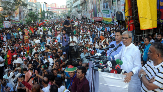 মির্জা ফখরুল বলেন, এখানে আমাদের রংপুর-দিনাজপুরের মানুষ আছেন। এক কৃষক নেতা অনেক দিন আগে ব্রিটিশ পিরিয়ডে তিনি বিদ্রোহ করেছিলেন… বিপ্লব করতে গিয়ে সমগ্র কৃষককে ডাক দিয়েছিলেন, ‘কোনঠে বাহে জাগো সবাই’। এই হচ্ছে ডাক।