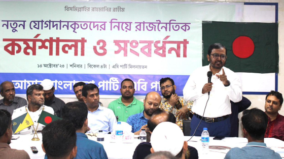 আজ শনিবার (১৪ অক্টোবার) রাজধানীর বিজয় নগরস্থ কেন্দ্রীয় কার্যালয়ে বিভিন্ন শ্রেণি-পেশার নেতাকর্মীদের এবি পার্টিতে যোগদান উপলক্ষে এক সংবর্ধনা অনুষ্ঠানে প্রধান অতিথির বক্তব্যে এ কথা বলেন এবি পার্টির যুগ্ম আহ্বায়ক অ্যাডভোকেট তাজুল ইসলাম।
