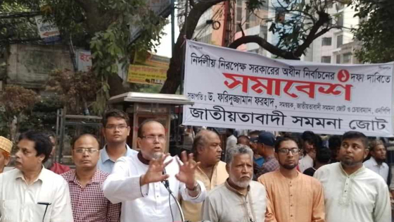 জাতীয়তাবাদী সমমনা জোটের এই সমন্বয়ক বলেন, শেখ হাসিনা সরকারের অধীনে এ দেশে আর কোনো নির্বাচন হবে না। দেশবাসী আগামীতে আর কোনো প্রহসনের নির্বাচন মেনে নেবে না। নির্বাচন হতে হবে নির্দলীয়-নিরপেক্ষ তত্ত্বাবধায়ক সরকারের অধীনে। প্রয়োজনে জাতিসংঘের তত্ত্বাবধানে নির্বাচন হতে হবে।
