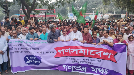গণসমাবেশ শেষে সংক্ষিপ্ত মিছিল শুরু হয়ে সেগুনবাগিচায় গিয়ে শেষ হয়। এতে গণতন্ত্র মঞ্চের নেতারা উপস্থিত ছিলেন।