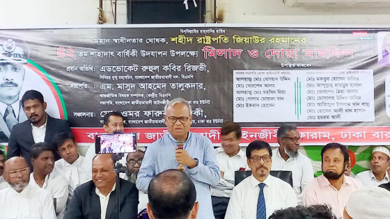 আজ বৃহস্পতিবার (২২ জুন) দুপুরে ঢাকা বার মিলনায়তনে জাতীয়তাবাদী আইনজীবী ফোরাম (ঢাকা বার) আয়োজিত বিএনপির প্রতিষ্ঠাতা জিয়াউর রহমানের ৪৩তম শাহাদতবার্ষিকী উপলক্ষে মিলাদ ও দোয়া মাহফিলে প্রধান অতিথির বক্তব্যে তিনি এসব কথা বলেন।