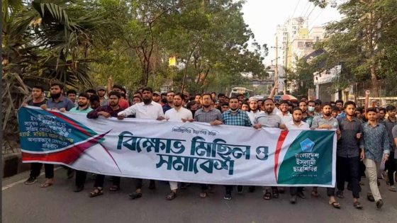 গুরুতর অসুস্থ ছাত্রশিবিরের সাবেক কেন্দ্রীয় সভাপতি ও বাংলাদেশ জামায়াতে ইসলামীর কেন্দ্রীয় প্রচার সম্পাদক অ্যাডভোকেট মতিউর রহমান আকন্দকে গ্রেপ্তারের প্রতিবাদে রাজধানীতে বিক্ষোভ মিছিল এবং সমাবেশ করেছে বাংলাদেশ ইসলামী ছাত্রশিবির।