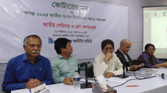 বাংলাদেশ অর্থনীতি সমিতির সভাপতি ও ঢাকা বিশ্ববিদ্যালয়ের অর্থনীতি বিভাগের প্রাক্তন অধ্যাপক ও চেয়ারম্যান ড. আবুল বারকাত সম্প্রতি ‘ভোটারের মন ও আসন্ন ২০২৪ জাতীয় সংসদ নির্বাচনের সম্ভাব্য ফলাফল’ শীর্ষক এক গবেষণা শেষ করেছেন। এ উপলক্ষে বৃহস্পতিবার (২৬ অক্টোবর) বাংলাদেশ অর্থনীতি সমিতি আয়োজিত একটি জাতীয় সেমিনার ও সংবাদ সম্মেলনের আয়োজন করা হয়।