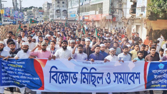 আওয়ামী লীগ সরকারের পদত্যাগ, তত্ত্বাবধায়ক সরকারের অধীনে সুষ্ঠু নির্বাচন এবং নিরাপদ ক্যাম্পাস নিশ্চিতকরণসহ ৭ দফা দাবিতে সারা দেশে বিভিন্ন জেলায় বিক্ষোভ মিছিল এবং সমাবেশ করেছে বাংলাদেশ ইসলামী ছাত্রশিবিরের বিভিন্ন শাখা।