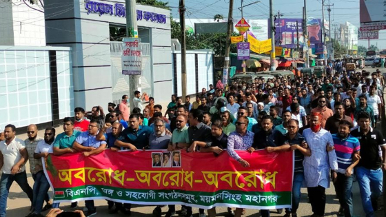 সরকারের পদত্যাগ দাবিতে একদফার যুগপৎ আন্দোলনের ধারাবাহিকতায় বিএনপির চলমান অবরোধ কর্মসূচি সফলে ময়মনসিংহে মিছিল করেছে দলটি।