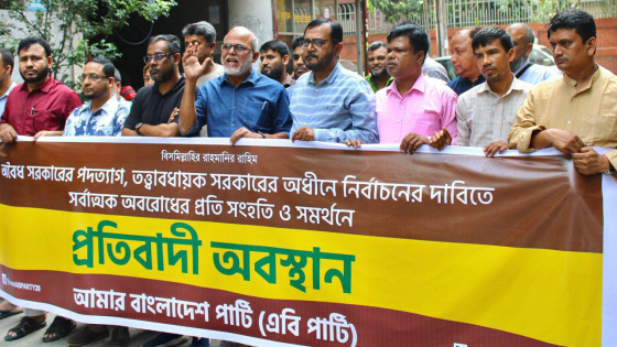 বিএনপিসহ যুগপৎ জোটের ডাকা ৪৮ ঘণ্টার অবরোধের প্রতি সংহতি জানিয়ে প্রতিবাদ ও বিক্ষোভ মিছিল করেছে আমার বাংলাদেশ পার্টি (এবি পার্টি)।