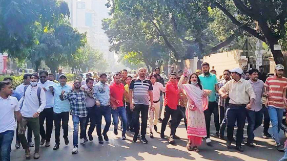 বুধবার (৮ নভেম্বর) গুলশান-১ গোলচত্বর থেকে গুলশান-২ সড়কে অবরোধের সমর্থনে বিক্ষোভ মিছিল করা হয়।