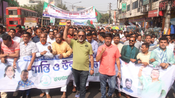 বায়তুল মোকাররম দক্ষিণ গেইটে অনুষ্ঠিত অবস্থান কর্মসূচিতে প্রধান অতিথি হিসেবে উপস্থিত ছিলেন, বাংলাদেশ আওয়ামী যুবলীগের চেয়ারম্যান শেখ ফজলে শামস্ পরশ।