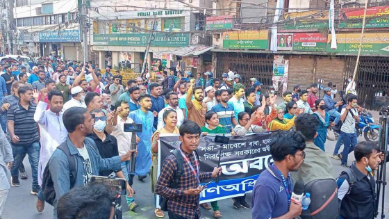 বিএনপিসহ বিরোধী দলগুলোর দেশব্যাপী চলমান চতুর্থ দফার ৪৮ ঘণ্টা অবরোধের সমর্থনে সোমবার (১৩ নভেম্বর) এই মিছিল করেছে নুরুল হক নুরের নেতৃত্বাধীন গণঅধিকার পরিষদের নেতাকর্মীরা।