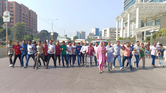 মিছিলটি শিশু মেলা থেকে শুরু হয়ে বেতার কেন্দ্রের সামনে সড়ক পথ অবরোধের মধ্য দিয়ে শেষ হয়।