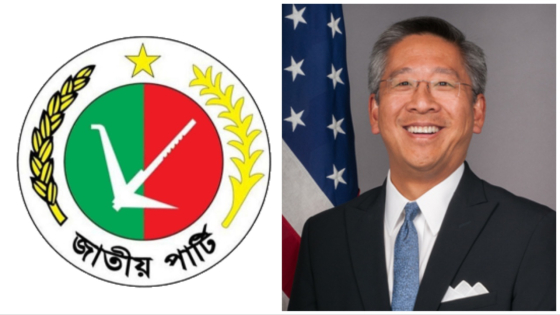 এদিকে বৈঠকের পর ঢাকাস্থ মার্কিন দূতাবাসের পক্ষ থেকে বিবৃতি দেওয়া হয়েছে। এতে বলা হয়, যুক্তরাষ্ট্রের দক্ষিণ ও মধ্য এশিয়াবিষয়ক সহাকারী পররাষ্ট্রমন্ত্রী ডোনাল্ড লু’র পাঠানো চিঠি জাতীয় পার্টির চেয়ারম্যানের হাতে পৌঁছে দিতে এসেছিলেন পিটার হাস।
