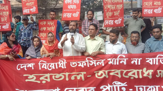 লেবার পার্টির মহানগর সভাপতি এস এম ইউসুফ আলীর সভাপতিত্বে কর্মসূচিতে আরও বক্তব্য রাখেন-দলের ভাইস চেয়ারম্যান অ্যাডভোকেট আমিনুল ইসলাম, অ্যাডভোকেট জহুরা খাতুন জুঁই, ভারপ্রাপ্ত মহাসচিব খন্দকার মিরাজুল ইসলাম, যুগ্ম-মহাসচিব মোহাম্মদ রুম্মান সিকদার, মহিলা সম্পাদিকা নাসিমা নাজনিন সরকার, অর্থ সম্পাদক রাসেল সিকদার, কেন্দ্রীয় সদস্য মো. শওকত হোসেন, ছাত্রমিশন সভাপতি সৈয়দ মো. মিলন প্রমুখ।