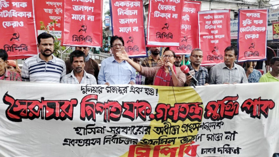 আগামী দ্বাদশ জাতীয় সংসদ নির্বাচনে একতরফা তপশিল ঘোষণার মধ্য দিয়ে পুতুল নির্বাচন কমিশন দেশের গণতন্ত্রকামী জনগণকে চূড়ান্ত লড়াইয়ের পথে ঠেলে দিয়েছে বলে মন্তব্য করেছে বাংলাদেশের কমিউনিস্ট পার্টি-সিপিবি নেতারা। তারা বলেছেন, একতরফা নির্বাচন বর্জনের পথেই গণতন্ত্র পুনরুদ্ধার করতে হবে।