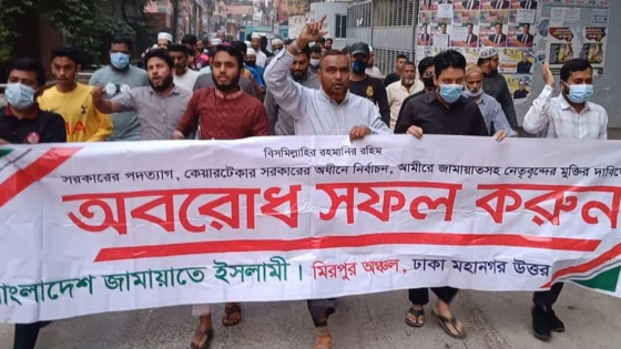 তিনি আজ রাজধানীতে ন্যায়ভ্রষ্ট রায়ের মাধ্যমে বাতিলকৃত জামায়াতের নিবন্ধন পূনর্বহাল, একতরফা নির্বাচনী তপশিল বাতিল, সরকারের পদত্যাগ ও কেয়ারটেকার সরকারের হাতে ক্ষমতা হস্তান্তরের দাবিতে কেন্দ্র ঘোষিত ৪৮ ঘণ্টার অবরোধ কর্মসূচির শেষ দিনে জামায়াতের ঢাকা মহানগরী উত্তরের উদ্যোগে মিরপুর-১ নম্বর চায়নিজ মোড়ে সড়ক অবরোধ করে বিক্ষোভ প্রদর্শনকালে এসব কথা বলেন।