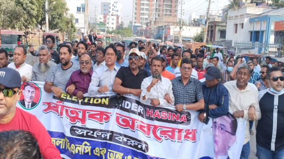 ‘একতরফা’ তপশিল বাতিল এবং একদফার আন্দোলনের ধারাবাহিকতায় দেশব্যাপী চলমান অবরোধের সমর্থনে খুলনায় জেলা ও মহানগর বিএনপি এবং অঙ্গসহযোগী সংগঠনের উদ্যোগে বিক্ষোভ মিছিল অনুষ্ঠিত হয়েছে।