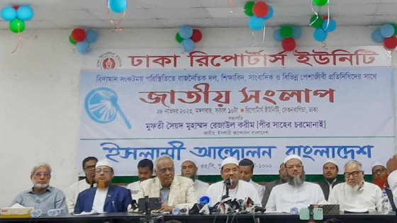 দেশে বিদ্যমান রাজনৈতিক সংকট নিরসনে ইসলামী আন্দোলন বাংলাদেশ কর্তৃক আয়োজিত জাতীয় সংলাপে তিন দফা প্রস্তাব তুলে ধরেছেন দলটির আমির মুফতি সৈয়দ মুহাম্মদ রেজাউল করীম।