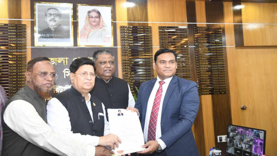 জেলা রিটানিং অফিসার ও সিলেটের জেলা প্রশাসক শেখ রাসেল হাসান ড. মোমেনের মনোনয়নপত্র গ্রহণ করেন।