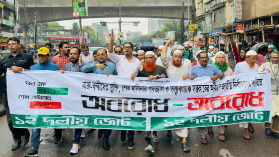 ১২ দলীয় জোটের শীর্ষ নেতারা বলেছেন, আওয়ামী লীগের একতরফা নির্বাচনমুখী অবস্থান দেখে মনে হচ্ছে আগামী নির্বাচনে (ভোটের দিন) ভোট কেন্দ্রগুলো আওয়ামী লীগের অস্থায়ী কার্যালয়ে পরিণত হবে। আওয়ামী লীগ প্রতারক। সুতরাং, জনগণ তাদের ভোট দেবে না। এবার জনগণ তাদের প্রতিহত করতে রাস্তায় নেমেছে।