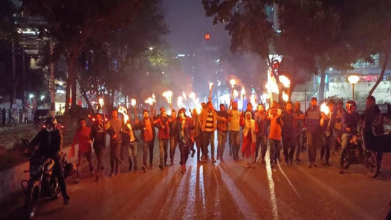 সোমবার (১১ ডিসেম্বর) সন্ধ্যা ৭টায় গুলশান ১নং মেইন সড়ক অবরোধ করে মশাল মিছিল করেন তারা। এতে নেতৃত্ব দেন বিএনপির জাতীয় নির্বাহী কমিটির সদস্য কাজী রওনকুল ইসলাম শ্রাবণ। এ সময় উপস্থিত ছিলেন ছাত্রদল কেন্দ্রীয় সহসভাপতি কামরুজ্জামান আসাদ, মো. মুতাছিম বিল্লাহ, মো. ঝলক মিয়া, সাইফুল ইসলাম সিয়াম, মো. সুরুজ মন্ডল, মো. মহিউদ্দীন, মেহেরাব আহমেদ মাহবুব মাহি, আলী হাওলাদার, যুগ্ম সাধারণ সম্পাদক জহির রায়হান আহমেদ, মো. সালাউদ্দীন, মশিউর রহমান মামুন, লিটন এ আর খান, আরিফুল ইসলাম আরিফ, মাহমুদুল হাসান আল মারজান, আশিক আহমেদ, রাকিবুল হাসান পলাশ অয়ন, খোরশেদ আলম লোকমান, কৃষিবিদ সোহরাব হোসেন সুজন, তন্বী মল্লিক, এমএম মারুফুল ইসলাম, মৃধা মো. মাসুদ রানা, মৌসুমী হক মৌ, মো. হাসান, সহসাধারণ সম্পাদক মো. মিনহাজুল আবেদীন নান্নু, কবির হোসেন ফকির, ফজলুল হক নিরব, সহসাংগঠনিক সম্পাদক শামীম খান, সৈয়দ ফয়সাল হোসেন, মাহফুজুর রহমান, আব্দুল্লাহ আল মনসুর কমেট, সৈয়দ নাজমুল ইসলাম বাহার, মো. গোলাম মোস্তফা, শফিকুল ইসলাম পিংকন, ক্রীড়া সম্পাদক ওমর ফারুক মামুন, তথ্য ও গবেষণা সম্পাদক জি এম ফখরুল হাসান, যোগাযোগ সম্পাদক মিনহাজ আহমেদ প্রিন্স, অর্থ সম্পাদক রিয়াজ হোসেন, প্রশিক্ষণ সম্পাদক রিয়াজুল হাসান বাপ্পী, ত্রাণ ও দুর্যোগ ব্যবস্থাপনা সম্পাদক তানভীর আহমেদ তানু, বৃত্তি ও ছাত্রকল্যাণ সম্পাদক আরিফ আহমেদ রনি, সহসাহিত্য ও প্রকাশনা সম্পাদক সাজিদ হাসান, সহআপ্যায়ন সম্পাদক ফকির ইব্রাহীম, কেন্দ্রীয় সদস্য কাজী আজহার হোসেন, আমির হামজা রাজু, ছাত্রনেতা আবু তালেব এবং তেজগাঁও কলেজ ছাত্রদলের সাবেক ভারপ্রাপ্ত সভাপতি নূরে আলম সিদ্দিকী টিটু, ঢাকা বিশ্ববিদ্যালয় ছাত্রদলের সহসভাপতি মো. মশিউর রহমান, যুগ্ম সাধারণ সম্পাদক নাছির উদ্দীন শাওন, বিজয় একাত্তর হলের সিনিয়র সহসভাপতি মো. সাইফ খান, জগন্নাথ বিশ্ববিদ্যালয় ছাত্রদলের যুগ্ম সাধারণ সম্পাদক ওয়াহিদুজ্জামান তুহিন। শেরে বাংলা কৃষি বিশ্ববিদ্যালয় ছাত্রদলের সাংগঠনিক সম্পাদক ফরহাদ হোসেন, সদস্য আব্দুল্লাহ আল মারুফ, কৃষি প্রশিক্ষণ ইনস্টিটিউট ছাত্রদলের আহবায়ক আব্দুল জলিল, বেসরকারি বিশ্ববিদ্যালয় ছাত্রদলের যুগ্ম সাধারণ সম্পাদক মীর মাহমুদুল হাসান আকাশ,ইস্তিয়াক আহমেদ রাব্বি, বাংলাদেশ ইউনিভার্সিটি অব বিজনেস অ্যান্ড টেকনোলজি (বিইউবিটি) ছাত্রদলের সদস্য সচিব আশিক ইলাহি, সরকারি বাঙলা কলেজ ছাত্রদলের সহসভাপতি আবদুল কাইয়ুম, যুগ্ম সম্পাদক সবুজ, কবি নজরুল সরকারি কলেজ ছাত্রদলের সহসভাপতি মাহমুদ ভূইয়া, ঢাকা মহানগর দক্ষিণ ছাত্রদলের যুগ্ম আহ্বায়ক ও দপ্তর সম্পাদক মেহেদী হাসান মামুন, ছাত্রনেতা নাঈম পাটোয়ারী, ঢাকা মহানগর উত্তর ছাত্রদলের ছাত্রনেতা আসিফ হোসেন মানিক, গুল