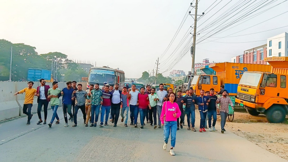 বুধবার (১৩ ডিসেম্বর) দুপুরে ঢাকা-চট্টগ্রাম মহাসড়কে অনুষ্ঠিত মিছিলে নেতৃত্ব দেন ছাত্রদলের কেন্দ্রীয় প্রথম সহ-সভাপতি তানজিল হাসান। মিছিলটি শনির আখড়া থেকে শুরু করে রায়েরবাগ বাসস্ট্যান্ডে পুলিশের বাধায় শেষ হয়। এ সময় পুলিশ ধাওয়া দিলে ছাত্রদলের একজন নেতা আহত হন বলে বিজ্ঞপ্তিতে জানানো হয়।