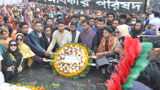 ছাত্র অধিকার পরিষদের সাধারণ সম্পাদক আরিফুল ইসলাম আদীবের নেতৃত্বে শ্রদ্ধা নিবেদন করে ছাত্র অধিকার পরিষদ। এ সময় উপস্থিত ছিলেন- সংগঠনের সহসভাপতি নেওয়াজ খান বাপ্পী, যুগ্ম সাধারণ সম্পাদক নাজমুল হাসান, সহসাংগঠনিক সম্পাদক মামুনুর রশীদসহ নেতাকর্মীরা।