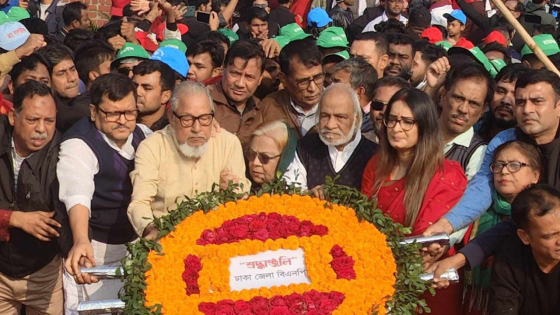 মহান বিজয় দিবস উপলক্ষে জাতির শ্রেষ্ঠ সন্তানদের ফুল দিয়ে শ্রদ্ধা জানিয়েছেন বাংলাদেশ জাতীয়তাবাদী দল (বিএনপি)। শনিবার (১৬ ডিসেম্বর) সকালে সাভার জাতীয় স্মৃতিসৌধে পুষ্পস্তবক অর্পণ করেন দলের সিনিয়র নেতারা।