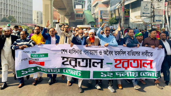 মঙ্গলবার (১৯ ডিসেম্বর) সকালে রাজধানীতে এক বিক্ষোভ মিছিলপরবর্তী সংক্ষিপ্ত সমাবেশে এসব কথা বলেন ১২ দলীয় জোটের নেতারা। এর আগে একদফা আন্দোলনের ধারাবাহিকতায় বিএনপিসহ বিরোধী দলগুলোর দেশব্যাপী চলমান হরতালের সমর্থনে প্রেসক্লাব, কাকরাইল ও বিজয়নগর এলাকায় ১২ দলীয় জোটের উদ্যোগে বিক্ষোভ মিছিল হয়।