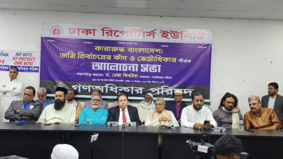 শুক্রবার (২৯ ডিসেম্বর) বিকেলে সেগুনবাগিচার ঢাকা রিপোর্টার্স ইউনিটিতে গণঅধিকার পরিষদের উদ্যোগে ‘কারারুদ্ধ বাংলাদেশ : ডামি নির্বাচনের ফাঁদ ও ভোটাধিকার’ শীর্ষক সর্বদলীয় আলোচনা সভায় তিনি এসব কথা বলেন।