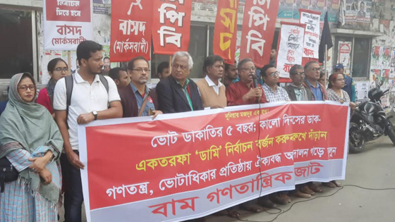একতরফা নির্বাচন করতে গিয়ে সরকার দেশকে এক ভয়ংকর সংকটের দিকে ঠেলে দিচ্ছে বলে অভিযোগ করেছে বাম গণতান্ত্রিক জোট। জোটের নেতারা বলছেন, বর্তমান আওয়ামী লীগ সরকার ভোট ডাকাতির মাধ্যমে অবৈধভাবে রাষ্ট্রীয় ক্ষমতা দখল করে আছে। তাই আগামী ৭ জানুয়ারি অনুষ্ঠিত হতে যাওয়া দ্বাদশ জাতীয় সংসদ নির্বাচন বর্জনের আহ্বান জানিয়েছেন জোটের নেতারা।