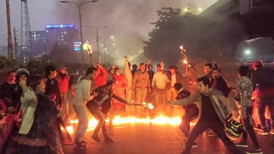 শুক্রবার (৫ জানুয়ারি) সন্ধ্যা ৬টায় বিএনপির কেন্দ্রীয় নির্বাহী কমিটির সদস্য কাজী রওনকুল ইসলাম শ্রাবণের নেতৃত্বে বনানীতে নৌ বাহিনী হেডকোয়ার্টারের সামনে রাস্তায় আগুন জ্বালিয়ে অবরোধ করে মশাল মিছিল করা হয়।