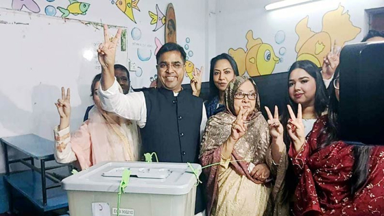নাজিরা বাজার ইসলামিয়া সরকারি প্রাথমিক বিদ্যালয়ে রোববার (৭ জানুয়ারি) দুপুরে ভোট দেন তিনি।