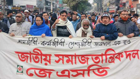 দ্বাদশ জাতীয় সংসদ বাতিল, সরকারের পদত্যাগ ও অবিলম্বে অন্তর্বর্তীকালীন নিরপেক্ষ সরকারের অধীনে নির্বাচনের দাবিতে রাজধানীতে বিক্ষোভ মিছিল করেছে জাতীয় সমাজতান্ত্রিক দল-জেএসডি।