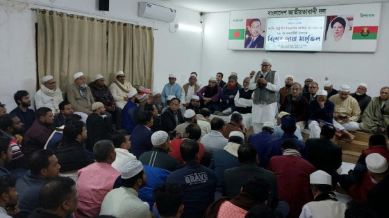 বিশেষ দোয়া মাহফিলে মোনাজাত পরিচালনা করেন জাতীয়তাবাদী ওলামা দলের আহ্বায়ক প্রিন্সিপাল মাওলানা শাহ মো. নেছারুল হক।