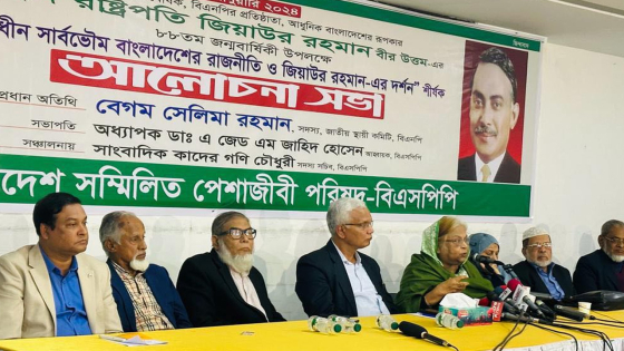 বিএনপির প্রতিষ্ঠাতা প্রয়াত প্রেসিডেন্ট জিয়াউর রহমান বীর উত্তমের ৮৮তম জন্মবার্ষিকী উপলক্ষে জাতীয় প্রেস ক্লাবের আবদুস সালাম হলে ‘স্বাধীন সার্বভৌম বাংলাদেশের রাজনীতি ও জিয়াউর রহমানের দর্শন’ শীর্ষক আলোচনা সভার আয়োজন করে বাংলাদেশ সম্মিলিত পেশাজীবী পরিষদ (বিএসপিপি)।