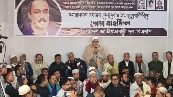 নয়াপল্টনে কেন্দ্রীয় কার্যালয়ের নিচতলায় বিএনপির উদ্যোগে দলের চেয়ারপারসন খালেদা জিয়ার ছোট ছেলে আরাফাত রহমান কোকোর ৯ম মৃত্যুবার্ষিকী উপলক্ষে দোয়া মাহফিল হয়। এতে দলের চেয়ারপারসনের উপদেষ্টা জয়নুল আবদিন ফারুক, সিনিয়র যুগ্ম মহাসচিব রুহুল কবির রিজভী ও সাংগঠনিক সম্পাদক আবদুস সালাম আজাদ বক্তব্য রাখেন। এর আগে সকালে বনানী কবরস্থানে আরাফাত রহমান কোকোর কবরে ফাতেহা পাঠ করে পুষ্পস্তবক অর্পণ করেন দলের স্থায়ী কমিটির সদস্য ড. আবদুল মঈন খান, সেলিমা রহমান, ভাইস চেয়ারম্যান ডা. এ জেড এম জাহিদ হোসেন, চেয়ারপারসনের উপদেষ্টা জয়নুল আবদিন ফারুক, কেন্দ্রীয় নেতা নাজিম উদ্দিন আলম, রফিকুল ইসলাম, সাইফুল ইসলাম ফিরোজসহ কেন্দ্রীয় ও অঙ্গসংগঠনের নেতাকর্মীরা।