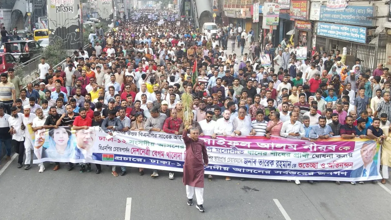তিনি আরও বলেন, আমরা আজকে গণতন্ত্রকামী জনগণকে একটা আহ্বান জানাতে চাই, মির্জা ফখরুল ইসলাম আলমগীরও মতো ব্যক্তি, মির্জা আব্বাস, আমীর খসরু মাহমুদ চৌধুরী, শামসুজ্জামান দুদু, জহির উদ্দিন স্বপন তারা কি অপরাধী, সন্ত্রাসী, ব্যাংক লুটেরা, অর্থপাচারকারী, ঋণখেলাপি? না, তারা রাজনীতিবিদ… অনেকে সাবেক এমপি, সাবেক মন্ত্রী। এখনো যদি সুষ্ঠু নিরপেক্ষ নির্বাচন হয় তারাই জনগণের ভোটে সংসদে প্রতিনিধিত্ব করবেন। পুলিশ ভাইদের প্রতি আমাদের অনুরোধ থাকবে, আপনারা রাষ্ট্রীয় বাহিনী, রাষ্ট্রীয় প্রতিষ্ঠান… আপনারা তাদের হয়ে কাজ করবেন না, মানুষের প্রতি অবিচার করবেন না। অনতিবিলম্বে সকল রাজবন্দির মুক্তি ও মিথ্যা মামলা প্রত্যাহারের দাবির জানাচ্ছি।