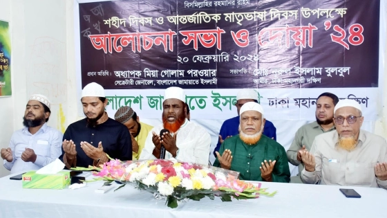 মঙ্গলবার (২০ ফেব্রুয়ারি) দুপুরে রাজধানীর একটি মিলনায়তনে শহীদ দিবস ও আন্তর্জাতিক মাতৃভাষা দিবস উপলক্ষে বাংলাদেশ জামায়াতে ইসলামী ঢাকা মহানগরী দক্ষিণ আয়োজিত আলোচনা সভা ও দোয়া অনুষ্ঠানে প্রধান অতিথির বক্তব্যে তিনি এ কথা বলেন।