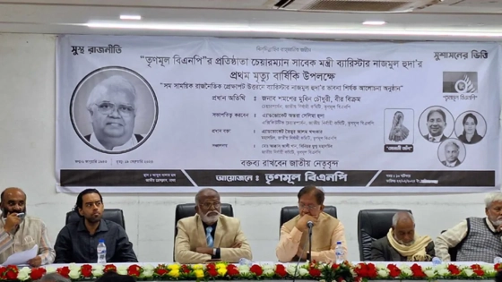 ব্যারিস্টার নাজমুল হুদার স্মরণে তৃণমূল বিএনপির এই চেয়ারপারসন বলেন, ‘সুস্থ রাজনীতি, সুশাসনের ভিত্তি’ স্লোগান নিয়ে তৃণমূল বিএনপি গঠন করেছিলেন নাজমুল হুদা। নিবন্ধনের জন্য প্রথমে না করে দেওয়া হয়েছিল। তখন থেকেই একটা অসুস্থ রাজনীতি শুরু হয়েছে। পরে নাজমুল হুদা আদালতের মাধ্যমে নিবন্ধন এনেছিলেন।