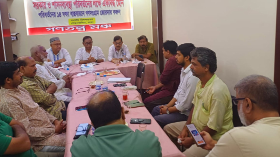 গণতন্ত্র মঞ্চের সমন্বয়ক বিপ্লবী ওয়ার্কার্স পার্টির সাধারণ সম্পাদক সাইফুল হকের সভাপতিত্বে সভায় বক্তব্য দেন নাগরিক ঐক্যের সভাপতি মাহমুদুর রহমান মান্না, জেএসডির সাধারণ সম্পাদক শহীদ উদ্দিন মাহমুদ স্বপন, রাষ্ট্র সংস্কার আন্দোলনের প্রধান সমন্বয়ক হাসনাত কাইয়ুম, ভাসানী অনুসারী পরিষদের সদস্য সচিব হাবিবুর রহমান রিজু, গণসংহতি আন্দোলনের সম্পাদকমণ্ডলীর সদস্য বাচ্চু ভূঁইয়া প্রমুখ।
